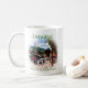 Sarajevo, die Hauptstadt von Bosnien und Herzegowina, ist eine charmante Stadt mit Echos ihrer Vergangenheit. In diesem Souvenirbild ist der Pigeon Square, das Zentrum des alten Basars, mit Menschen, die einkaufen, Kinder spielen und Tauben, die nach Krümeln suchen, belebt. Auf der anderen Seite ist ein Bild von Mostar. Mostar ist ein schönes Ziel, mit interessanter Architektur und eine Brücke, von der die Einheimischen tauchen. Im Sommer ist die Luft voll mit Restaurants, die Mittag- und Abendessen für Einheimische und Touristen grillen. Diese Kaffee-Tasse ist vollständig anpassbar.