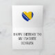 Das schöne Design beinhaltet glückliche Ballons und Knöpfe mit den Worten "Happy Birthday", alles in den Farben der bosnischen Flagge. Design ist mit dem Herzen in den bosnischen Flaggen-Farben und der Geburtstagsbotschaft beendet. Die Elemente können mit der Funktion "Anpassen!" vollständig angepasst werden. Diese farbenfrohe Geburtstagskarte ist das perfekte Geschenk für Ihren Freund aus Bosnien.