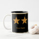 Ein grafisches Bild von fünf goldenen Sternen mit dem Text 5 Star Boss von Künstler/Designer Charmaine Paulson auf einer Tasse. Die Tasse hat den Text "Weltgrößter Boss" und eine Vorlage für Ihren Namen.