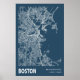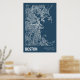 Boston Massachusetts City Map Line Art Blue Print Poster