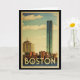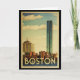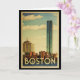 Boston Massachusetts Design im Vintage Travel Stil mit dem Boston Harbour mit Blick auf die Skyline.