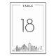 Eine elegante und dennoch minimale Hochzeitskarte für eine Tischnummer in der wunderschönen Stadt Boston, Massachusetts. Es bietet eine vereinfachte Tischnummer, die über einer stilisierten Version der beliebten Skyline der Stadt ruht.
