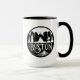 Diese neue Schwarz-Weiß-Illustration der Bostoner Skyline zeigt viele bekannte Sehenswürdigkeiten, darunter das Gebäude der Hauptstadt, den Zollturm, den Hancock, Old Hancock und die Prudential-Gebäude sowie die Zakim-Brücke und das Finanzviertel.