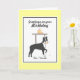 Ein Hund hilft sich selbst zu einem Bruchteil von Geburtstagskuchen. Fügen Sie Text hinzu.