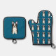 Boston Terrier blue Ofenhandschuh & Topflappen-Set
