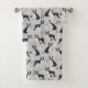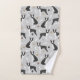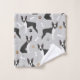 Niedliche Boston Terrier Hunde mit schwarz-weißen Mänteln sitzen und stehen verstreuten Hundeknochen und Pfotendrucken.