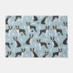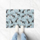 Niedliche Boston Terrier Hunde mit schwarz-weißen Mänteln sitzen und stehen verstreuten Hundeknochen und Pfotendrucken.