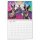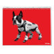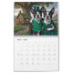 A dog calendar that features Boston Terriers in unique and humorous depictionspread over twelve months.