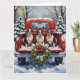 Bring dapper, friendly charm to your holiday season with this adorable Boston Terrier Christmas design! This festive scene features three alert, tuxedo-coated Boston Terriers sitting contentedly in the back of a classic red pickup truck, nestled in a picturesque snowy winter forest. The vintage truck is adorned with a vibrant Christmas wreath, twinkling with red and gold ornaments and warm, glowing lights. Soft snowflakes gently fall, enhancing the winter wonderland effect. A decorated Christmas tree in the background completes this heartwarming picture, making it an ideal Christmas gift for any Boston Terrier owner, dog lover, or admirer of festive and beloved dog art. This design perfectly captures the joyful spirit of the holidays.