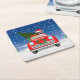Boston Terrier Dog Autofahren Auto in Schnee Weihn Rechteckiger Pappuntersetzer