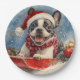Boston Terrier Dog in Sledge Let it Snow Christmas Pappteller