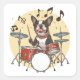 Boston Terrier Dog Playing Drums Quadratischer Aufkleber