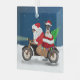 Ein Weihnachtsmann, der mit dem Fahrrad Weihnachtsbaum und den Boston Terrier Hund als Geschenk liefert, ist eine ideale Weihnachtsgeschenkidee für jemanden, der diese Liebe züchtet.