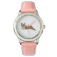 Kinderuhr aus Edelstahl mit rosa Lederarmband
