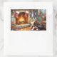 Boston Terrier Fireplace with Christmas Lights Rechteckiger Aufkleber