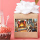 A delightful Christmas artwork featuring a charming Boston Terrier sitting beside a glowing fireplace decorated with stockings and twinkling Christmas lights. This cozy holiday scene captures the Boston Terrier’s playful personality and loving spirit, making it perfect for dog enthusiasts and festive home decor. Bring warmth, joy, and a touch of holiday cheer to your space with this adorable Christmas-inspired art piece.