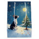 A peaceful and dreamy painting of a Boston Terrier stargazing on Christmas night. Perfect for adding calm, magical winter beauty to your festive collection or décor.