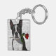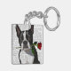 Boston Terrier mit Rose in Mouth Schlüsselanhänger