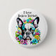 Niedlicher Boston Terrier Dog umgeben von rosa, gelben und blauen Blumen. Ai art. Niedliche Geschenkidee für Boston Terrier Besitzer. Ich Liebe Boston Terriers.
