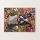 Ein charmanter Boston Terrier sitzt glücklich in einer lebendigen Wildblume, umgeben von farbenfrohen Blüten in Rosa, Gelb und lila. Dieses lebendige Kunstwerk vereint die fröhliche Energie der Rasse und die Schönheit der Natur in voller Blüte.