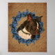 Sweet Boston Terrier in einem hübschen blauen Blumenkranz auf strukturierten, gealterten Plakatdruck aus Papier.