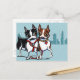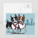 Originelle Kunstwerke von Off-Leash Art von zwei Boston Terriers, einem seltenen farbigen Boston, die beide an einer roten Leine klatschen. Dieses Kunstwerk finden Sie auch auf Visitenkarten für Haustiere: