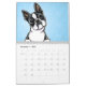Niedlicher Wandkalender für Ihre Zuhause, Ihr Büro oder ein Geschenk für einen Hundefreund. Eine andere originelle Illustration von Andie of Off-Leash Art jeden Monat der beliebten Boston Terrier Hundezüchtung.