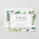 Die elegante botanische RSVP-Karte zeichnet sich durch grüne Aquarellfarben und Vintages Blattwerk aus, das Ihr gewünschtes UAWG und Ihre individuelle Akzeptanz und Ablehnung von Texten abbildet. Entworfen, um unsere Botanica Einladung Kollektion zu passen.