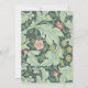 Diese grüne Babydusche ist geschlechtsneutral und kann sowohl für einen Jungen als auch für ein Mädchen verwendet werden. Der Text ist in einem hellgrünen Oval, mit goldener Grenze, mit goldenen Buchstaben geschrieben, mit Ausnahme des Namens, der grün ist. Der Anlass "Baby Shower" ist in einem kalligrafischen Skript geschrieben, die Erholung in Kappen. Der Hintergrund ist das Tapetenmuster "Leicester" von Morris & co (von John Henry Dearle (1859-1932), das auf einem Werk von William Morris basiert), aus dem Jahr 1912, nun im öffentlichen Bereich.Es wird von grünen Blätter auf dunklem Hintergrund dominiert, hat aber auch einige weiß-rot , weiß-blau und gelb.