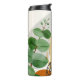 Botanisches Design in Grün, Orange, Beige und Aquarellelementen.