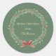 Botanical Christmas Wreath Modern Script Runder Aufkleber