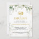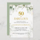 Botanical Fifty and Fabulous Script Birthday Party Invitation.