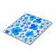 Ceramic tile in a watercolor-style floral pattern with flowers in shades of deep blue on a white background. Large, detailed blossoms alongside smaller, simpler flowers and delicate branching stems, for an airy, botanical feel.