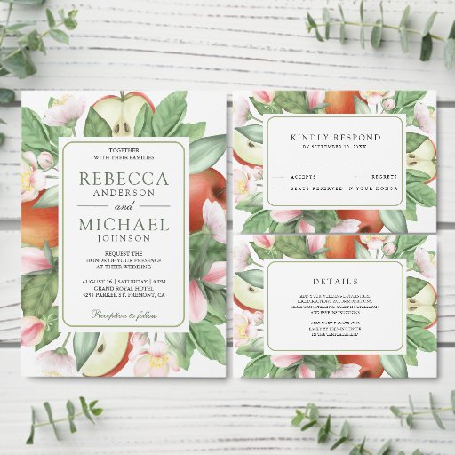 Botanical Floral Red Apple Orchard Wedding Acryleinladungen