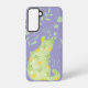 Botanical Green Cat Samsung Case – Purple Floral Galaxy Hülle