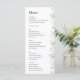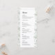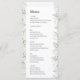 This garden-inspired botanical wedding menu beautifully captures the essence of nature with its lush leafy borders and minimalist layout. The front side features an elegant food menu showcasing the full course — from fresh starters to gourmet entrées and a decadent dessert — while the back side presents a refined beverages selection, including signature cocktails, wines, and refreshments. The soft green foliage artwork adds a touch of organic charm and sophistication, ideal for outdoor, garden, or nature-themed weddings. Its clean typography and modern botanical design create a perfectly balanced, timeless piece of minimalist wedding stationery that harmonizes luxury and simplicity.