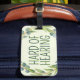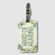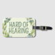 This luggage tag features the slogan 'Hard of Hearing' in a thin font, surrounded by a wreath of eucalyptus leaves, on a pale green background. You can edit the text as needed. 🍃 For more useful deafness accessories, visit my store Zazzle.com/Elder_Vitality 🍃 For custom orders, message me on Zazzle