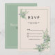 A delicate floral wedding RSVP invitation, adorned with botanical pink, ivory, and mint flowers, and soft greenery.