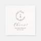These botanical wedding monogram napkins feature an elegant crest with your initials surrounded by hand-drawn leaves and soft watercolor greenery with red berries on a crisp white background. The word “Cheers” appears in a stylish script, creating simple, elegant details perfect for your celebration. Personalize these custom cocktail napkins with your names, date, or custom text using the easy template fields.