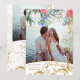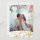 © 2022 Sozialite Designs & LICENSORS. Ein elegantes goldfarbenes und wasserfarbenes 2 Foto Save the Date mit wunderschönen dekorativen Glitzer-Look botanischen Wirbel und Aquarellfarben Blume. Schöne Skriptkalligraphie und Aquarellfarben Blume in Blau, Weiß, Rosa, Rot und Grün. Imitate Gold sehen Sprinklen Konfetti auf der Rückseite.