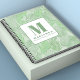 Ein einfaches Design mit einem einfachen, minimalistischen Monogramm-Namen, einem mit Monogramm Anfangsbuchstaben, einem floralen grünen Palmenbaum, einem stilvollen trendigen typografischen Schriftart, einem schlichten, eleganten, minimalistischen Blätter, mit tropischen Wasserfarben-Blättern, ideal für Zuhause-Büroarbeitstitel, personalisierten Namensberuf mit ausgekleidetem, Uni-regiertem oder Graphen-Papier, ideal für Kompositionsklasse-Notizbuch