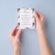 Botanisch-lila-goldene Blumnhochzeitsmenü Flyer