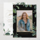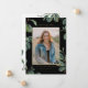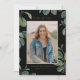 Mit dieser individuell anpassbaren Foto Abschluss-Ankündigungskarte kündigen Sie Ihren Abschluss an Familie und Freunden. Es enthält Aquarellfarben-Blätter auf schwarzem Hintergrund. Personalisieren Sie diese boho Foto Abschluss Ankündigung durch Hinzufügen eines Fotos, Name, Schule und andere Details. Diese botanische Foto Abschluss-Ankündigung ist in anderen Cardstock erhältlich.