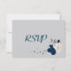 Herrliche blau-weiße Blume mit silberfarbenen Blätter auf grauem Hintergrund mit botanischer RSVP-Karte zur Auswahl des Mahls Die Glitzer-Details werden simuliert