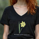 Ein schwarzer T - Shirt mit einer botanischen Daffodil-Blume-Illustration in Pastellfarben (Narcissus pseudonarcissus) und einem anpassbaren Text: ein nettes Geschenk für ein Mädchen, das Blume Lieben! Wilde Narzisse ist die Blume der Geburt des März, die Blume von Fischen und Äschen und symbolische Bedeutungen von Wiedergeburt, Vergebung, Kreativität, Energie und Vitalität.