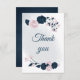 Botanische Blume mit eleganter Marine und rosa Dankeskarte