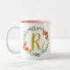 Botanische Blume Wreath Gold Monogram Initial R Zweifarbige Tasse