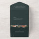 Elegante Aquarellfarben Erden Herbst Blumen und botanisches Blattwerk, alles in einer Hochzeitseinladung in smaragdgrün Rückenfarbe. Template bietet, Einladung, rsvp Karte und Platz, um jede Einladung mit Ihrem Gastnamen und Ihrer Adresse zu personalisieren.