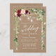 Botanische Watercolor, Eukalyptus-Blätter, Aquarellfarben-Burgund-Marsala-Flora, Moderne Kalligraphie, String-Lights und Mason-Jars, White Frame, Kraft Wedding Einladungs-Karte