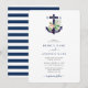 Ein minimalistisches botanisches florales Anker monogramm Hochzeitsdesign. Ein einfaches nautisches Design, das einen Aquarellanker verwendet, der mit Blumen, Muscheln und Seesternen dekoriert ist und ein einzigartiges Monogramm schafft. Ein bezauberndes marineblau-weiße Streifen tropisches Stranddesign mit klassischer Schrift Typografie. Ein elegantes Küstenstrand Thema Hochzeit einladen Design mit modernen Elementen. Es stehen auch passende Hochzeitsstilleriedateien und andere Hochzeitsformate zur Verfügung.